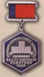 Нагрудний знак «Заслужений працівник житлово-комунального господарства РРФСР» . (1977/1979)