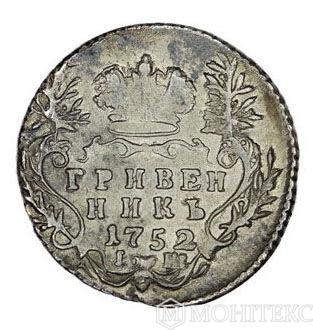 Гривенник 1752 року