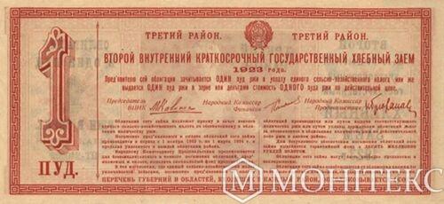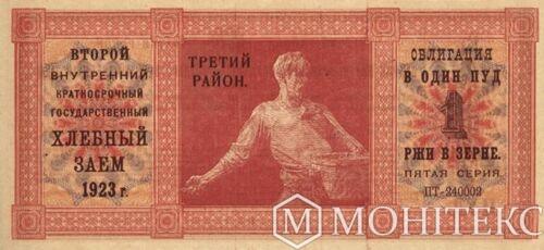 Облігація 1 пуд жита в зерні 3 район 1923 року