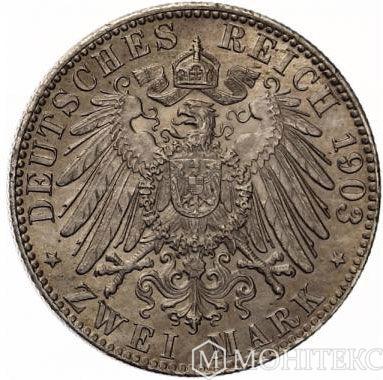 Срібна монета 2 Марки 1903 рік. Гамбург