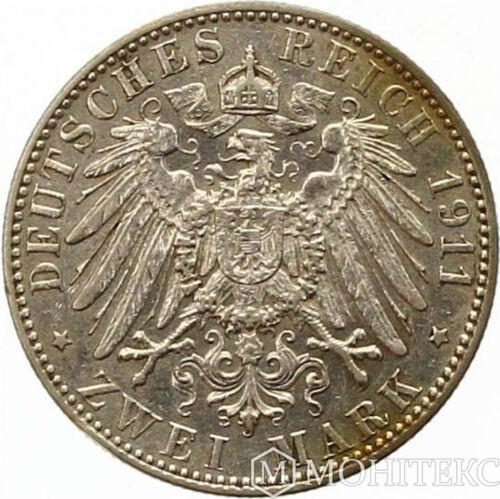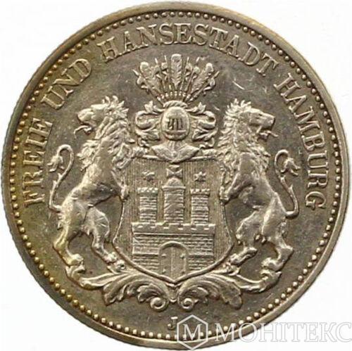 Срібна монета 2 Марки 1911 рік. Гамбург