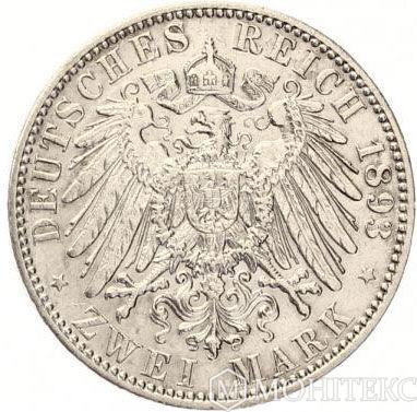 Срібна монета 2 Марки 1893 рік. Пруссія