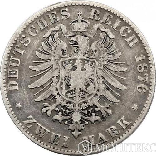 Срібна монета 2 Марки 1876 рік. Саксонія