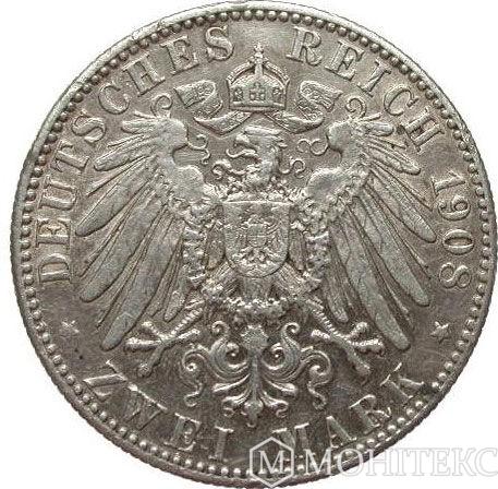 Срібна монета 2 Марки 1908 рік. Саксонія