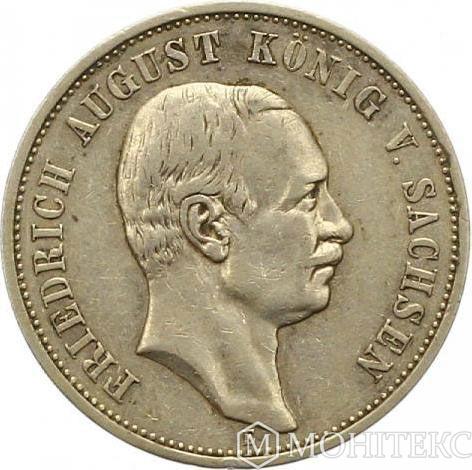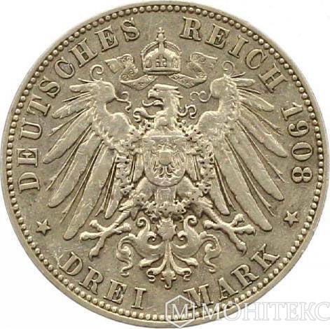 Срібна монета 3 Марки 1908 рік. Саксонія