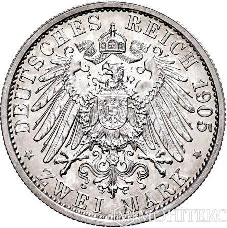 Срібна монета 2 Марки 1905 рік. Шварцбург-Зондерхаузен