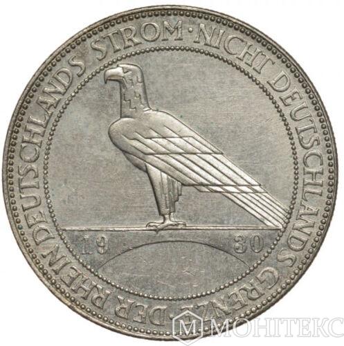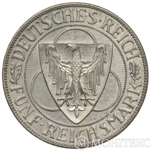 Срібна монета 5 Рейхсмарок 1930 рік. Німеччина. Звільнення Рейнланда