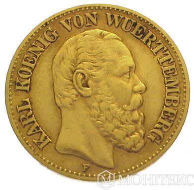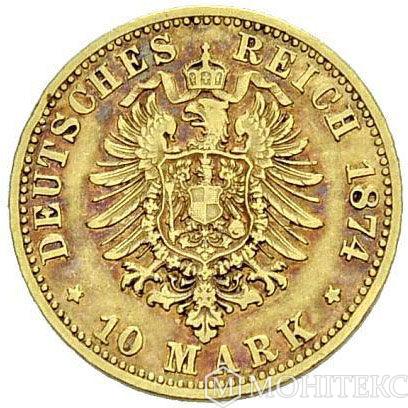 Золота монета 10 Марок 1874 рік. Вюртемберг