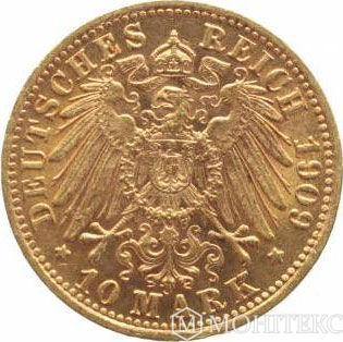 Золота монета 10 Марок 1909 рік. Вюртемберг