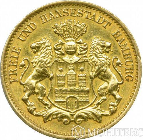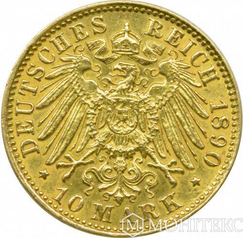 Золота монета 10 Марок 1890 рік. Гамбург
