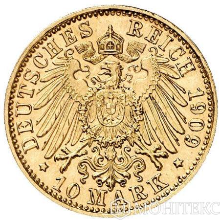 Золота монета 10 Марок 1909 рік. Саксен-Мейнінген