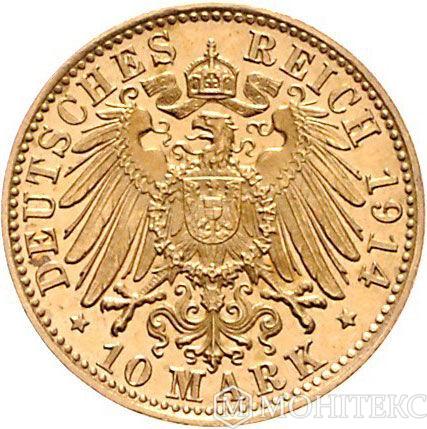 Золота монета 10 Марок 1914 рік. Саксен-Мейнінген