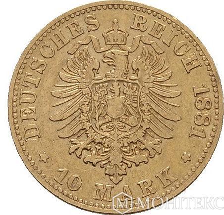 Золота монета 10 Марок 1881 рік. Саксонія