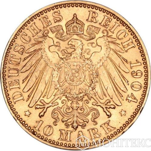 Золота монета 10 Марок 1904 рік. Саксонія