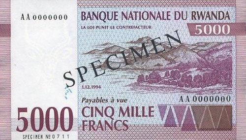 Банкнота 5000 франків 1994 року (зразок), Руанда, UNC