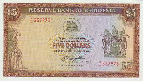 Банкнота 5 доларів 1976 року, Родезія, UNC