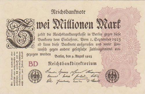 Банкнота 2 мільйони марок 1923 року, Німеччина, UNC