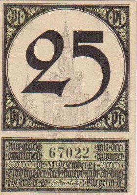 Банкнота 25 пфенігів 1921 року, Нотгельд, Андернах (Andernach), UNC