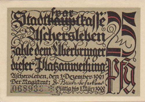 Банкнота 25 пфенігів 1921 року, Нотгельд, Ашерзлебен (Aschersleben), UNC