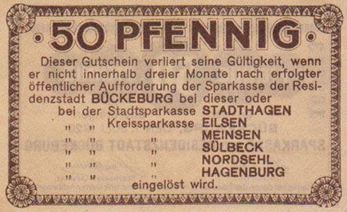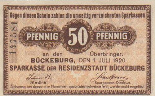 Банкнота 50 пфенігів 1920 року, Нотгельд, Бюккебург( Bückeburg), UNC