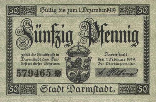 Банкнота 50 пфенігів 1919 року, Нотгельд, Дармштадт (Darmstadt), UNC