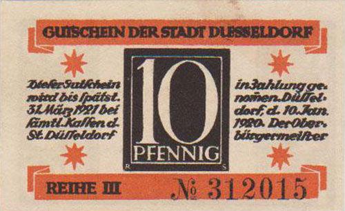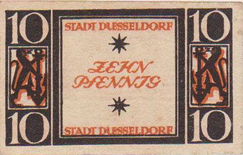 Банкнота 10 пфенігів 1920 року, Нотгельд, Дюссельдорф (Düsseldorf), UNC