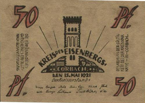 Банкнота 50 пфенігів 1921 року, Нотгельд, Айзенберг (Eisenberg), UNC