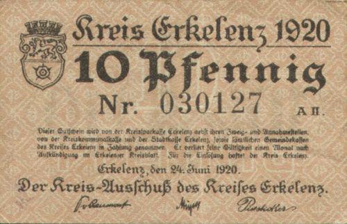 Банкнота 10 пфенігів 1920 року, Нотгельд, Еркеленц (Erkelenz), UNC