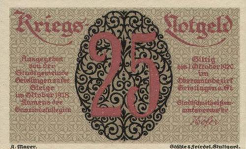 Банкнота 25 пфенігів 1918 року, Нотгельд, Гайслінген (Geislingen), UNC