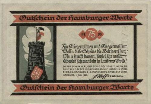 Банкнота 75 пфенігів 1921 року, Нотгельд, Гамбург (Hamburg), UNC