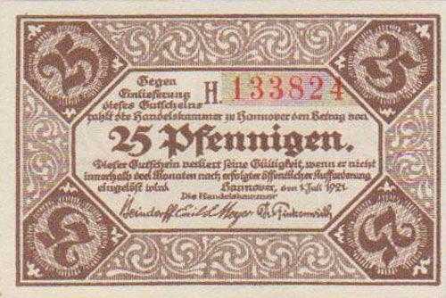 Банкнота 25 пфенігів 1921 року, Нотгельд, Ганновер (Hannover), UNC
