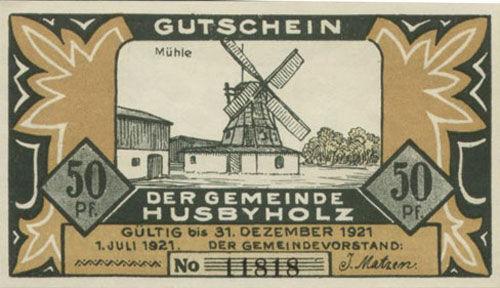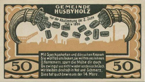 Банкнота 50 пфенігів 1921 року, Нотгельд, Хусбіхольц (Husbyholz), UNC