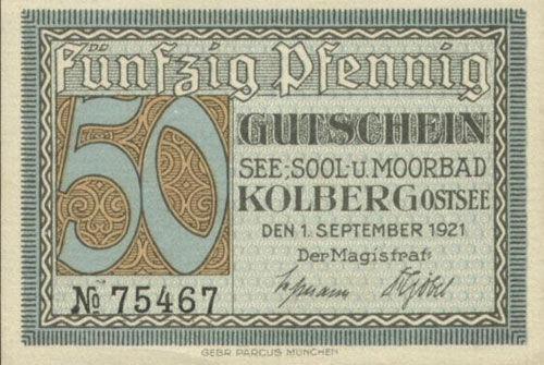 Банкнота 50 пфенігів 1921 року, Нотгельд, Кольберг озеро Ост (Kohlberg ostsee), UNC