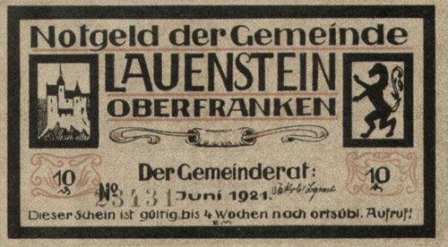 Банкнота 10 пфенігів 1921 року, Нотгельд, Лауенштайн (Lauenstein), UNC