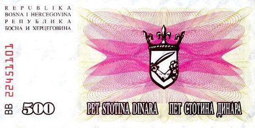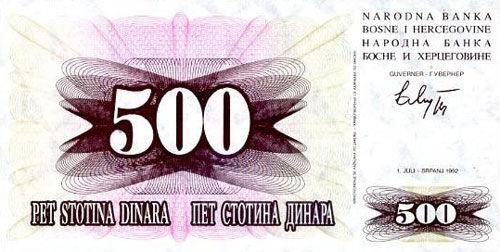 Банкнота 500 динарів 1992 року, Боснія і Герцеговина, UNC