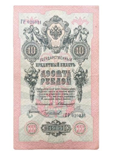 10 рублів 1909 року, серія ГР, Коншин-Чихиржин, VF