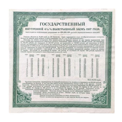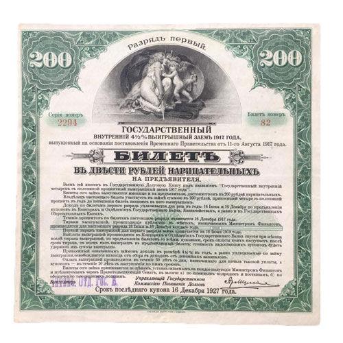 Квиток в 200 рублів 1917 року, Держ. внутрішня 4½% виграшна позика, розряд 1, VF+