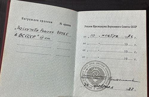 Орден За службу Батьківщині № 80565 + орденська книжка