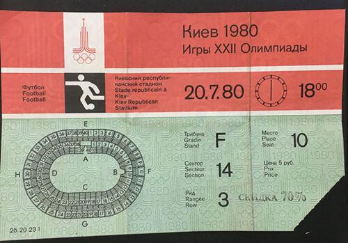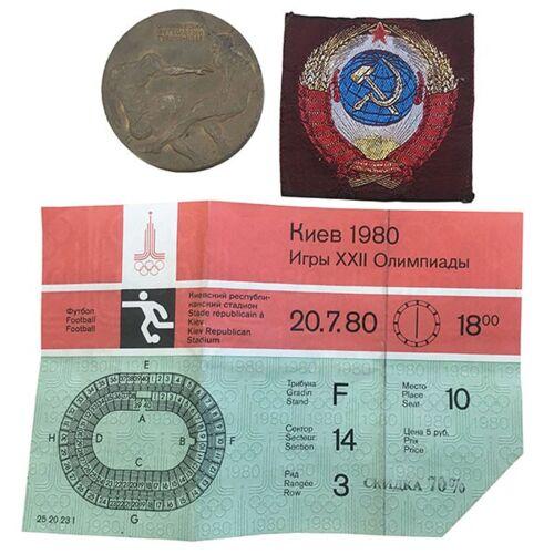 Настільна медаль «Олімпійський футбольний турнір, Київ 1980» + квиток та нашивка