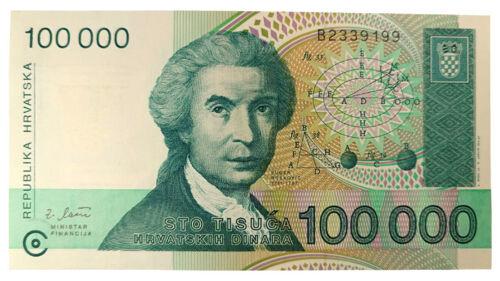Банкнота 100000 динар 1993 року, Хорватія, UNC