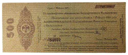500 рублів 1919 року (Короткострокове зобов'язання) XF