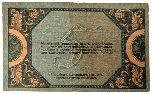 5 рублів 1918 року, Ростов-на-Дону (в/з вензель з літер ГБ), VF