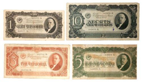 Набір банкнот СРСР 1,3,5,10 червонців 1937 року, F-VF, №4