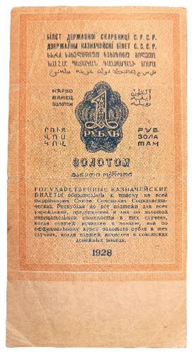 1 рубль золотом 1928 року, серія 20, Касир Соловйов, VF