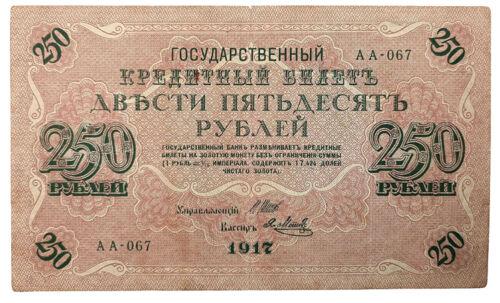 250 рублів 1917 року Касир - Я. Метц, VF