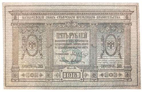 5 рублів 1918 року, Серія А, Сибір, XF, №5