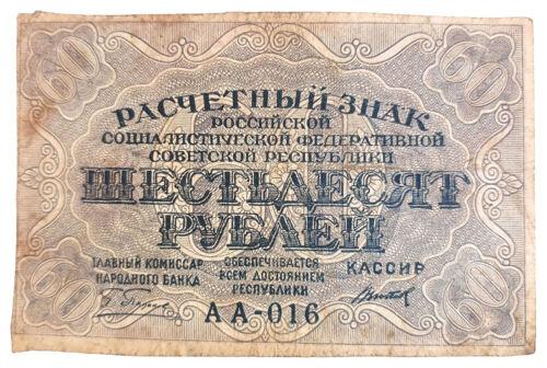 60 рублів 1919 року (Розрахунковий знак), в/з великі зірки, касир - Титов, VF