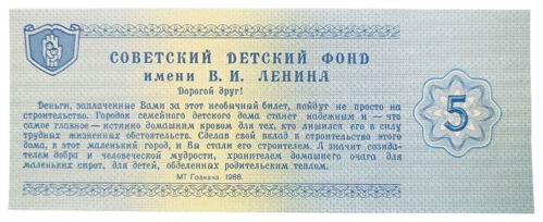 5 рублів 1988, Благодійний квиток, Радянський дитячий фонд ім. В.І.Леніна, UNC