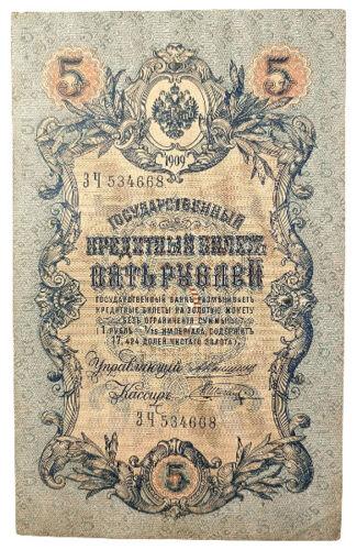 5 рублів 1909 року (в/з цифри номіналу), Коншин - Шагін, VF
